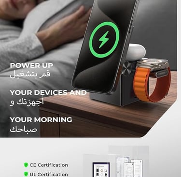 باختصار، يعد الشاحن اللاسلكي ٣ في ١ الخيار الأمثل لكل من يحتاج إلى شحن سلس وفعال. من خلال دمج عدة خيارات شحن في جهاز واحد، يضمن لك هذا الشاحن عدم انقطاع طاقة جهازك عندما تحتاج إليها. مع سعره المناسب وميزاته المتعددة، فإنه يستحق التجربة. لا تفوت الفرصة واحصل على شاحن لاسلكي ٣ في ١ لجهازك اليوم.
