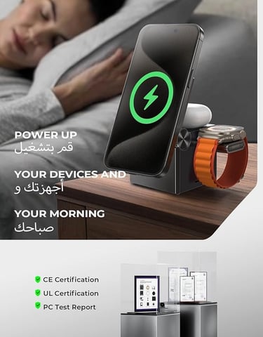 استمتع بشحن سريع وملائم مع شاحن لاسلكي ٣ في ١من ليسين
